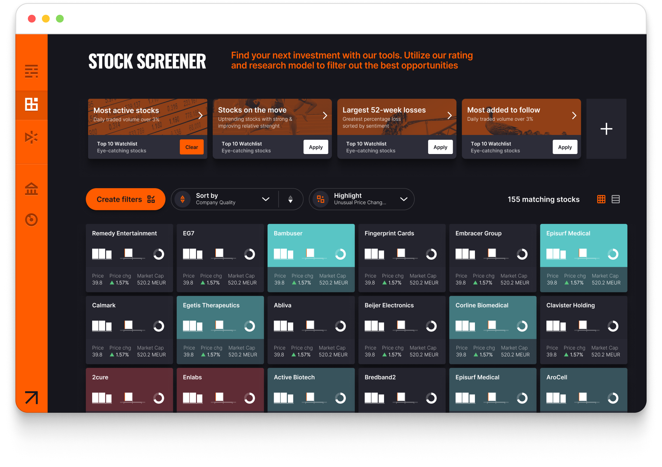 Stock screener with Quality Rating filters